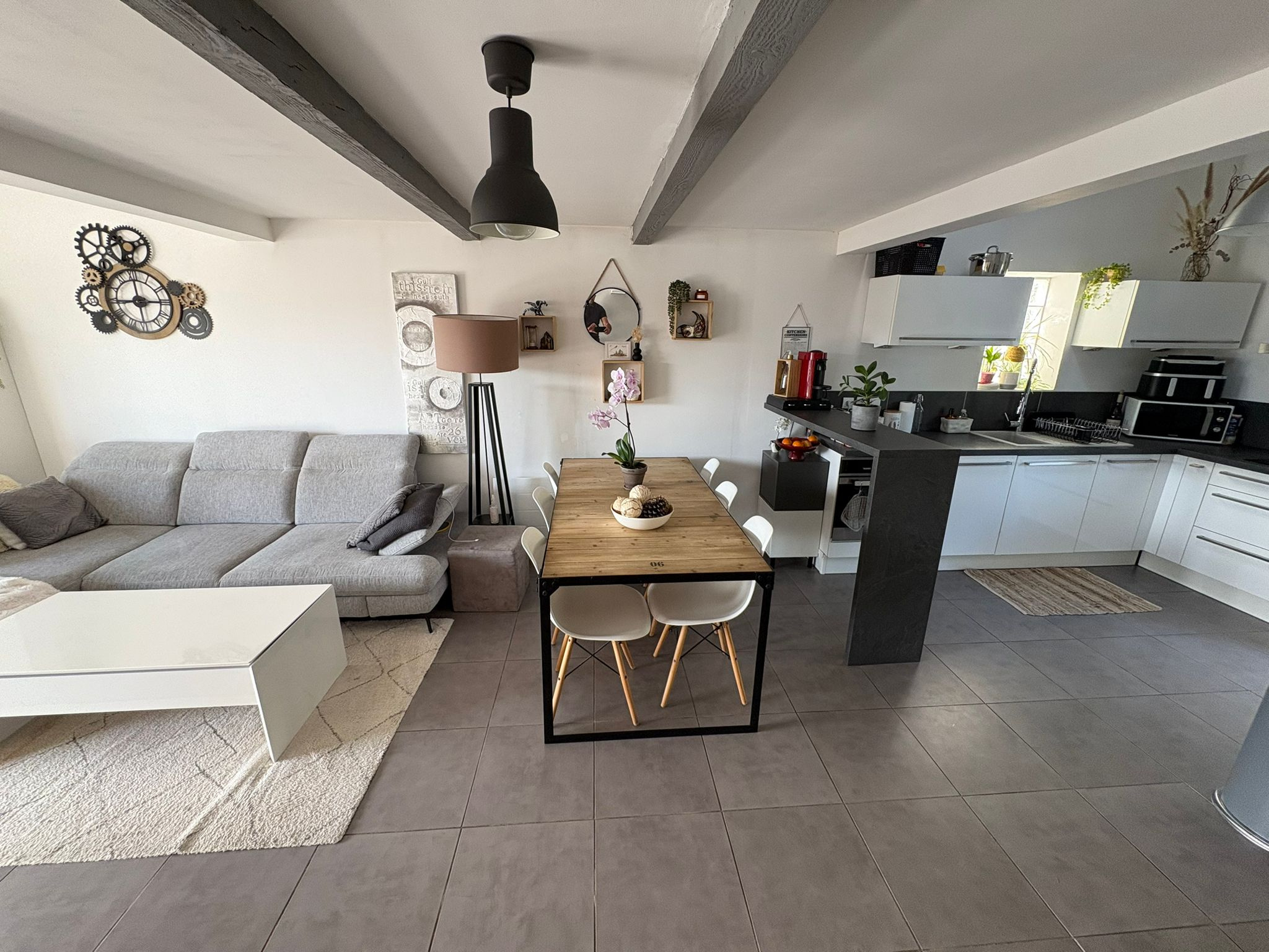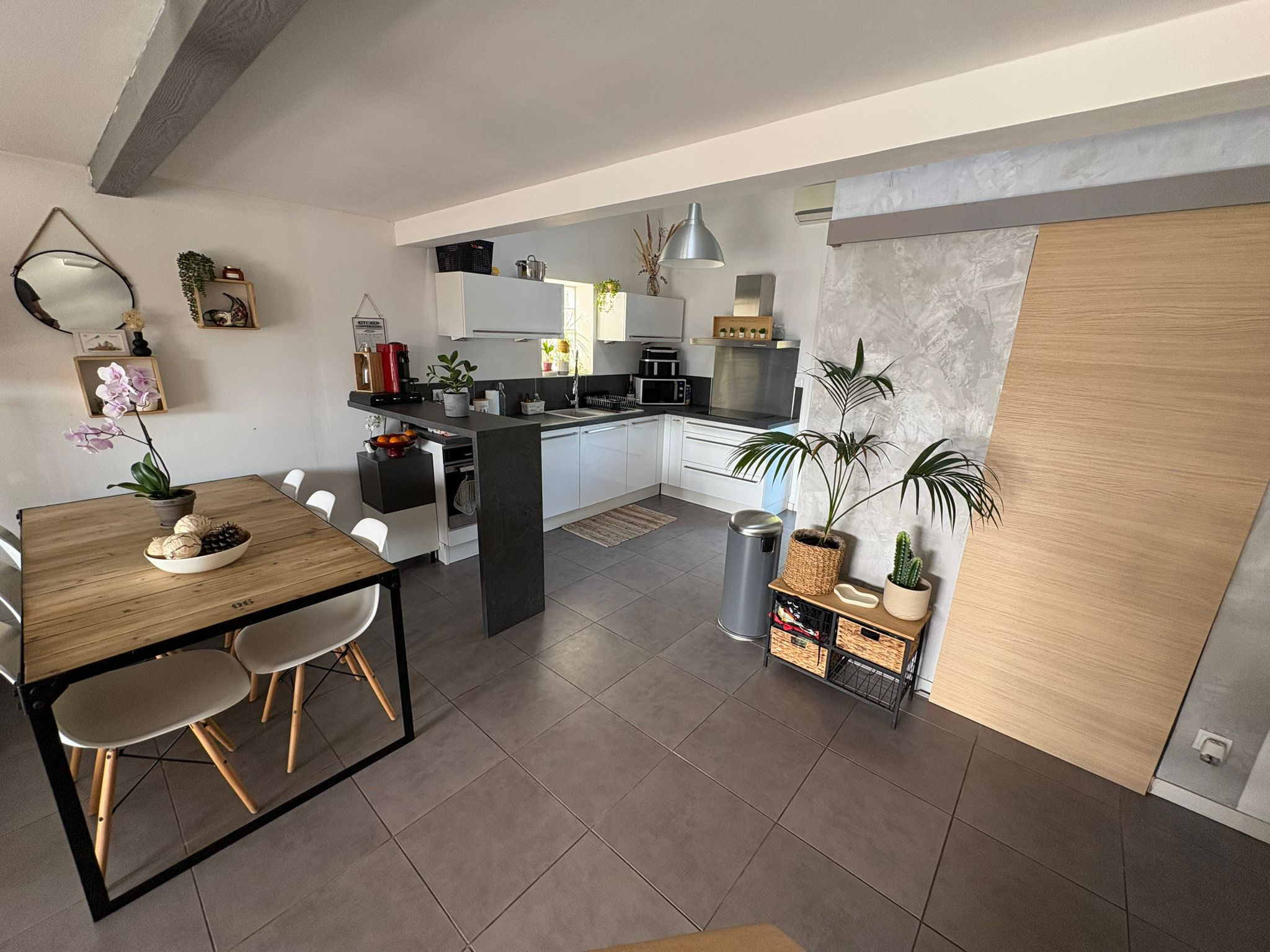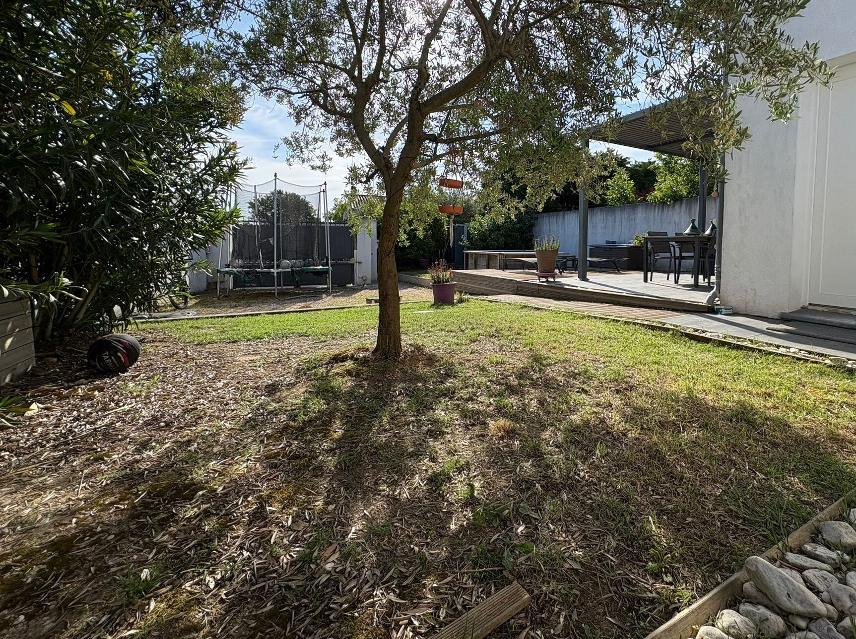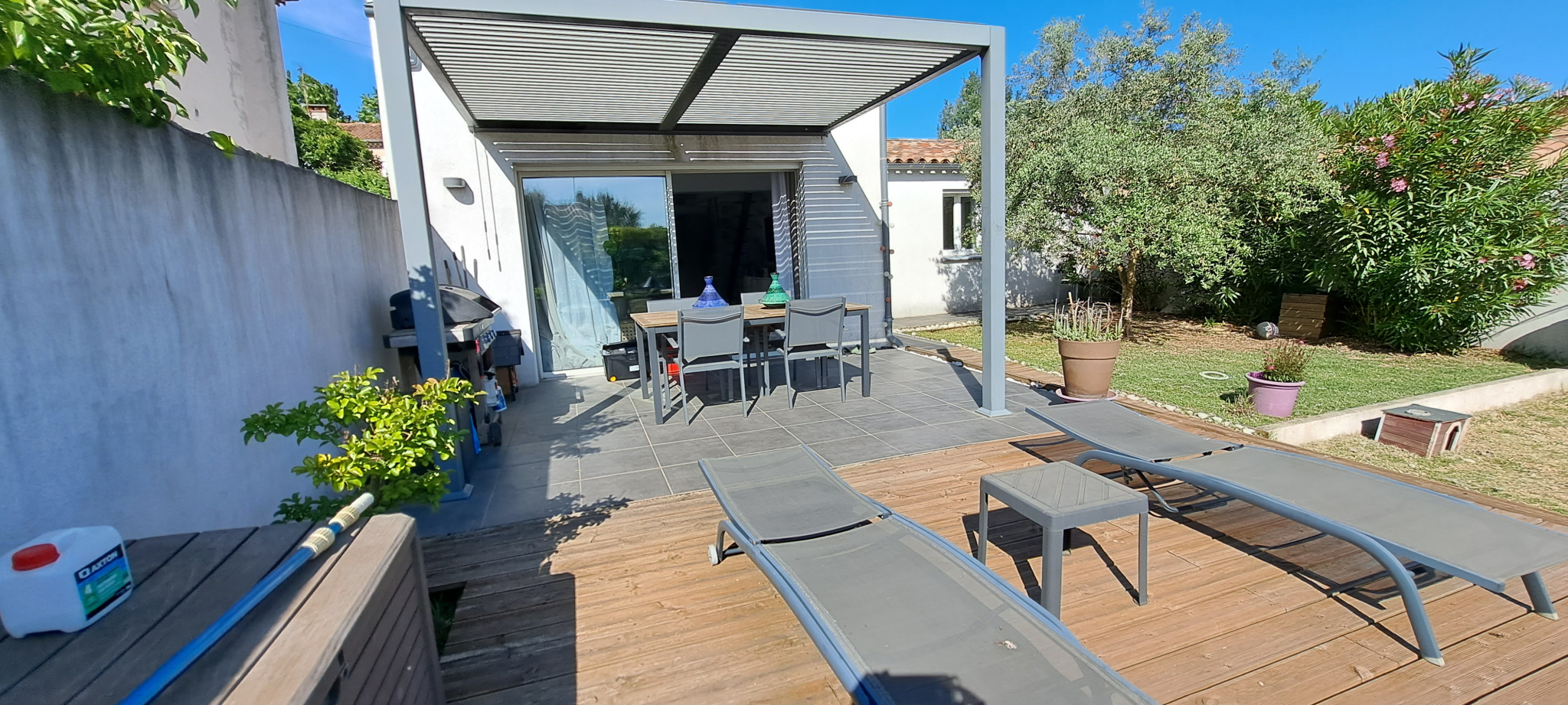 Meyreuil 13590. *** VENDU PAR L'AGENCE *** . Dans un secteur résidentiel, sur une parcelle de 265 m², maison Type 3/4 de 82 m² de plain pied avec une mezzanine mansardée qui peut servir de bureau ou de 3ème chambre. Elle se compose d'une pièce de vie lumineuse avec cuisine ouverte qui donne à l'arrière sur le jardin, d'un cellier, un dégagement, une salle bains avec toilettes et 2 chambres dont une avec dressing. De construction récente, la maison est en parfait état et offre de belles prestations : climatisation réversible dans le séjour, chauffage rayonnant, double vitrage PVC, volets roulants, fibre, WC suspendu, alarme avec vidéo surveillance, forage. DPE en C. A l'extérieur, côté séjour, vous avez une terrasse carrelée avec pergola à lames orientables depuis laquelle vous avez vue sur la Sainte Victoire, un espace vert, une terrasse bois qui borde une petite piscine hors sol (2m X 2m) et possibilité de garer un véhicule à l'intérieur de la propriété. A découvrir au plus vite ! Prix : 395 000 €. Honoraires "charge vendeur" . Mandat Amépi N°1786. RCS 833984529. CPI Marseille-Provence N°1310 2018 000 025 466. Contactez l'agence Bel Art Immobilier au O4 42 54 5O 52 pour plus de renseignements. Les informations sur les risques auxquels ce bien est exposé sont disponibles sur le site Géorisques : georisques.gouv.fr