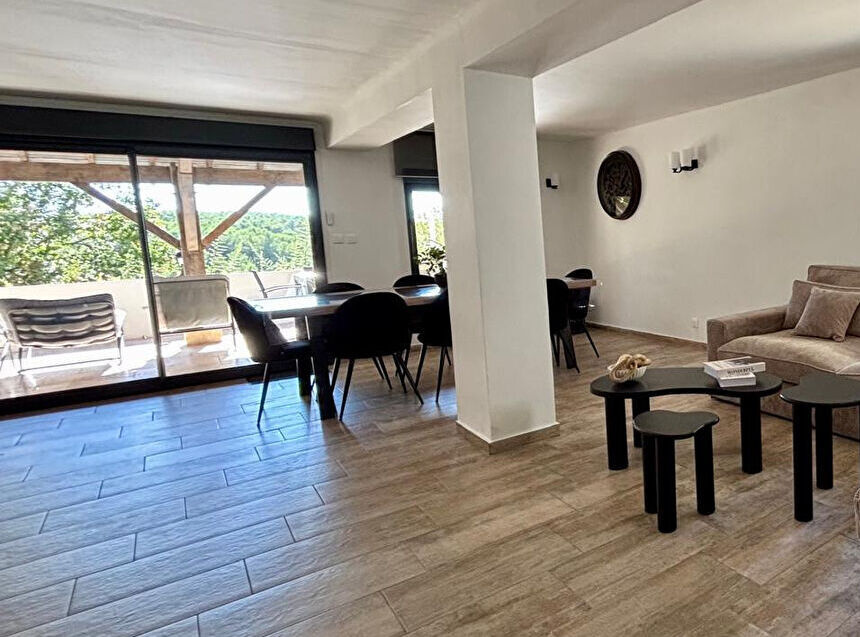 Belcodène - 13720 - Bel Art immobilier vous propose cette villa Type 6 d'environ 140 m² sur une parcelle d'environ 866 m². Vous serez séduit par ses volumes harmonieux, sa luminosité naturelle et sa vue panoramique totalement dégagée. Descriptif : pièce de vie spacieuse et traversante, largement ouverte sur l'exterieur, quatre chambres, dont une belle suite parentale offrant confort et intimité. Une vaste terrasse plein Sud, véritable prolongement de l'espace interieur, invitant à la détente face au paysage. Rénovation intégrale en 2024, alliant élégance et fonctionnalité au sein d'un environnement calme et résidentiel. Sans vis à vis, en fond d'impasse ce bien rare conjugue avec justesse, esthétique contemporaine, qualité des prestations et sérénité du cadre de vie. Lieu de vie à la fois raffiné, discret et tourné vers la nature. Prix : 595 650 €. Honoraires "charge vendeur" . Mandat N°1901. RCS 833984529. CPI Marseille-Provence N°1310 2018 000 025 466. Contactez l'agence Bel Art Immobilier au O4 42 54 5O 52 pour plus de renseignements. Les informations sur les risques auxquels ce bien est exposé sont disponibles sur le site Géorisques : georisques.gouv.fr