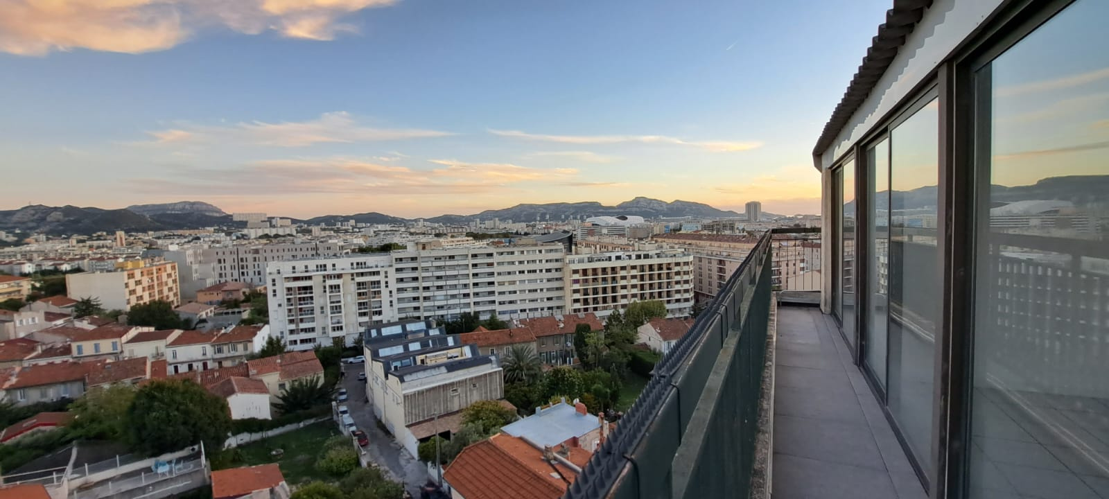Marseille 13010, Secteur Timone. DERNIER ÉTAGE - TYPE 4/5 LUMINEUX - GARAGE - CAVE - Appartement Type 4/5 de 95 m² Carrez + grande terrasse, dans une résidence fermée au 9ème étage (dernier étage) desservi par deux ascenseurs. Terrasse de 30 m² + balcon au Sud de 10 m² offrant une vue dégagée panoramique exceptionnelle. L'appartement est atypique, sans vis à vis et baigné de lumière grâce à ses nombreuses baies vitrées et sa triple exposition. Composé d'un hall, d'une pièce de vie avec cuisine ouverte de 35 m² et un salon de 16 m² donnant sur la terrasse, un dégagement, 3 chambres, salle d'eau et WC indépendant. Vous bénéficiez aussi d'un garage en sous-sol, ce qui est très appréciable dans le quartier et d'une cave privative. Chauffage collectif + climatisation réversible individuelle, double vitrage. Copropriété sans procédure en cours, charges de 198 €/ mois. Taxe Foncière de 1438 €. A proximité facultés et Hopital de la Timone, accès facile aux transports en commun et autoroutes. Chauffage collectif + climatisation réversible, double vitrage. Prix : 465 000 €. Honoraires "charge vendeur" . Mandat N°1939. RCS 833984529. CPI Marseille-Provence N°1310 2018 000 025 466. Contactez l'agence Bel Art Immobilier au O4 42 54 5O 52 pour plus de renseignements. Les informations sur les risques auxquels ce bien est exposé sont disponibles sur le site Géorisques : georisques.gouv.fr